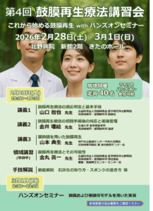 鼓膜再生療法講習会(これから始める鼓膜再生 with ハンズオンセミナー)に出展いたします。2026年2月28日~3月1日に出展いたします。